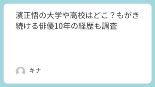 芸能 濱正悟の大学や高校はどこ?もがき続ける俳優10年の経歴も調査 ドラマや映画で注目を集める俳優・濱正悟さんが、朝ドラ『ばけばけ』に出演すると報道され注目されています。学歴や経歴を調査すると、明治大学を卒業し、学生時代から俳優活動をスタートさせていたことが分かりました。しかし、オーディションに何度も落ち、... 2025.09.30 芸能