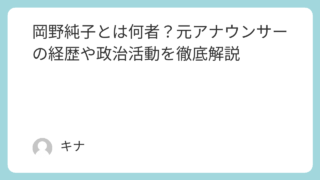 元NHKアナウンサーから浦安市議、そして国会議員へ。岡野純子氏の政治キャリアと2024年の衆議院選挙での初当選、さらに最近の動向までをわかりやすく解説します。この記事でわかること岡野純子氏の学歴・職歴から政治家になるまでの経緯浦安市議から国...