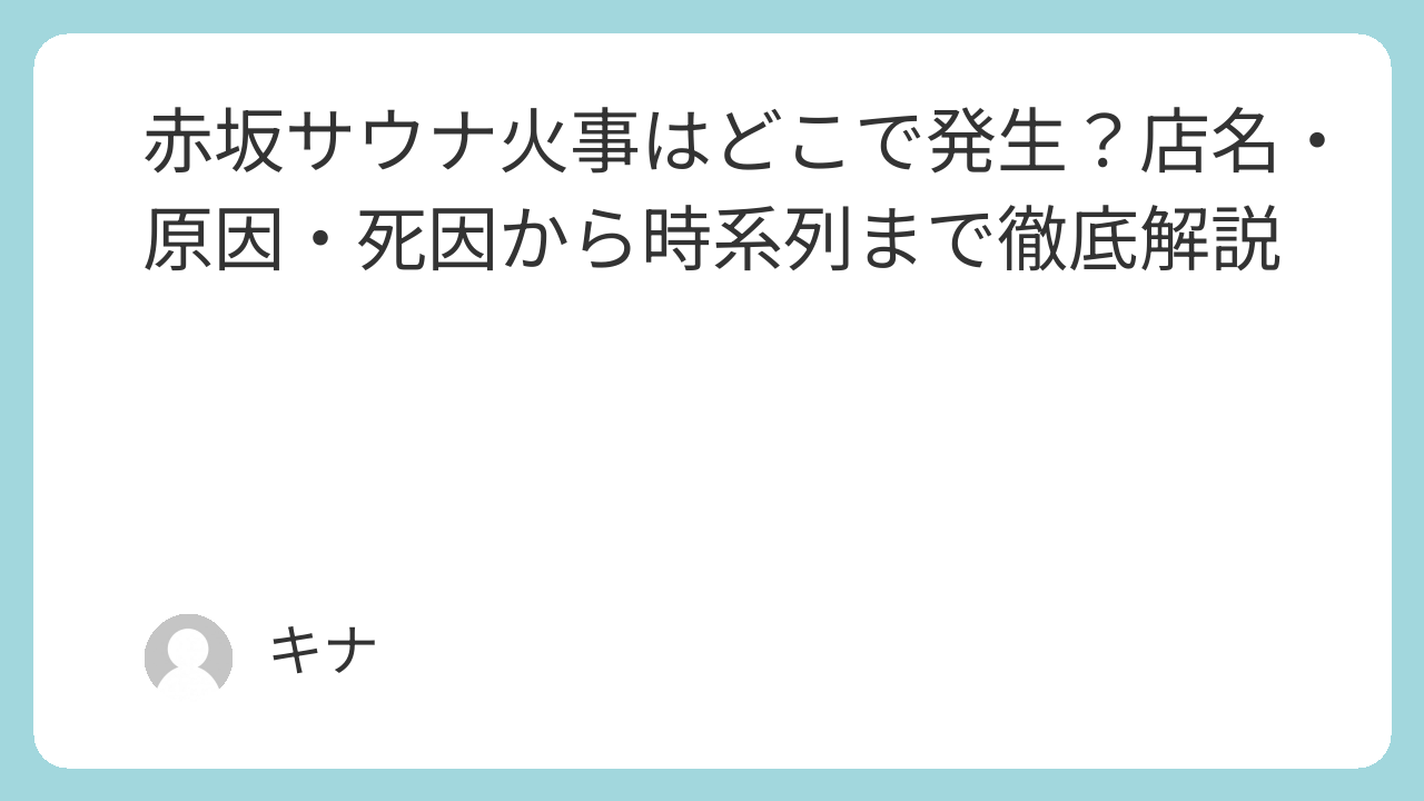 • 赤坂サウナ火災が発生した店舗名と場所の詳細