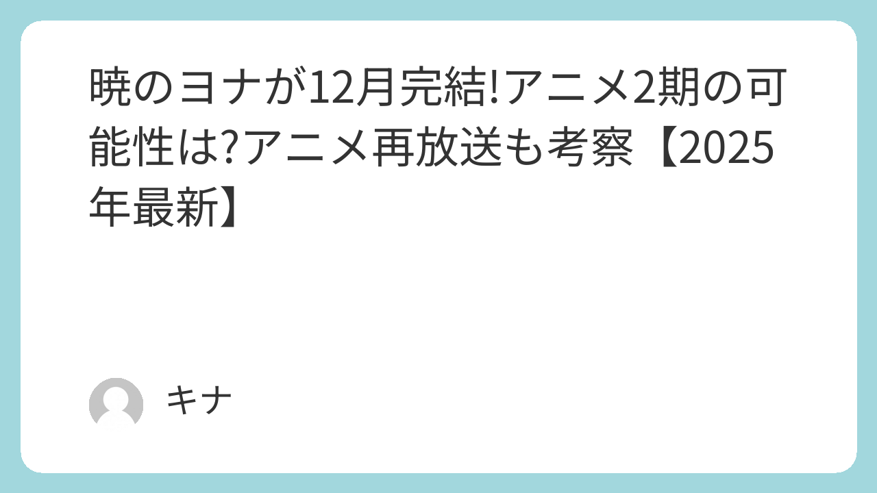 業界関係者の分析では、続編可能性は決して高くはないものの、完結作品として再評価される可能性はあるとされています。原作ストックは2クール分以上あり、制作環境さえ整えば実現可能な状況です。