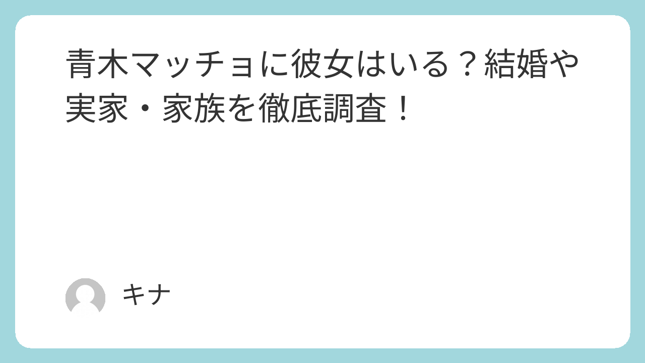 この記事では、青木マッチョさんの恋愛事情から実家、家族構成まで詳しく解説します。