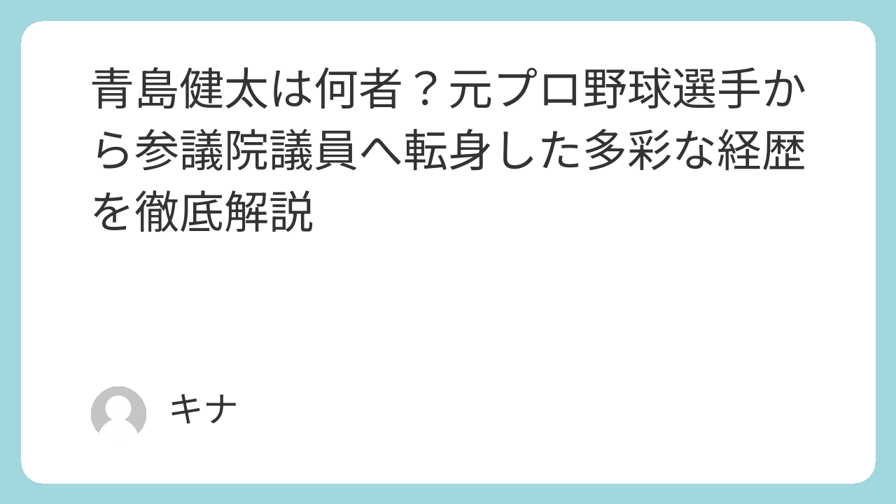 元プロ野球選手でありながら、スポーツライター、大学教授、そして現在は参議院議員として活躍する青島健太さん。多彩なキャリアを歩んできた人物として注目を集めています。