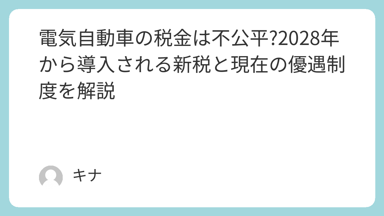 電気自動車の税金をめぐる「不公平」論争は、ガソリン税を負担しないEVと、道路維持費用の財源確保という構造的な問題から生じています。