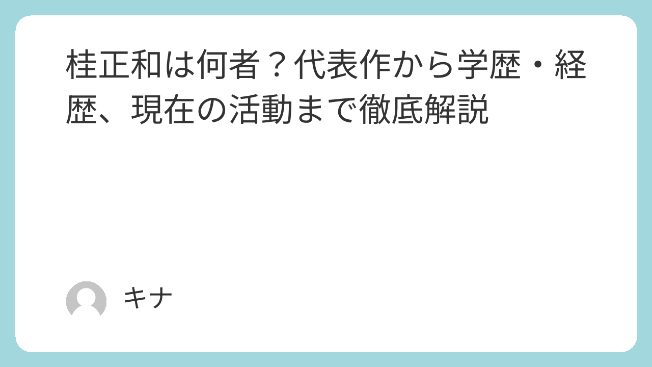 本記事では、桂正和の経歴や学歴、代表作について詳しく解説します。