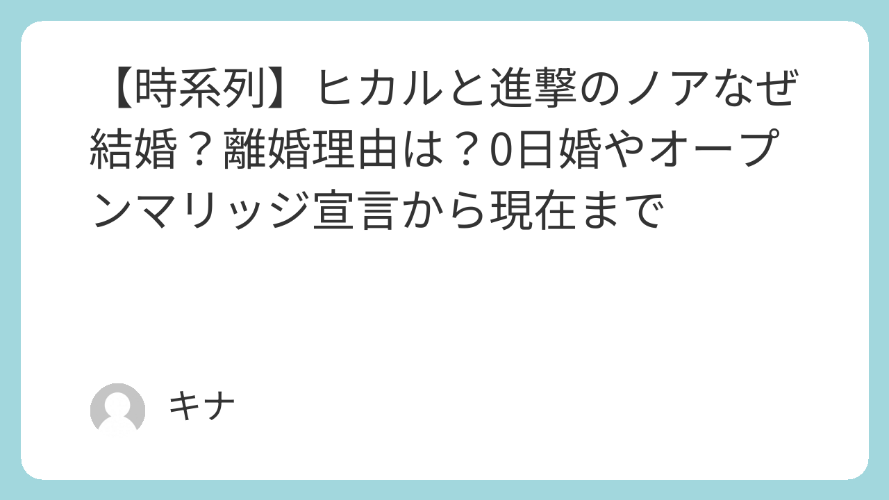 • ヒカルと進撃のノアの「0日婚」から離婚までの時系列