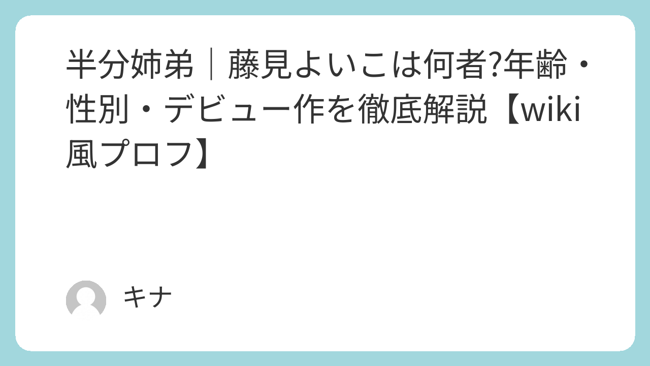 半分姉弟|藤見よいこは何者?年齢・性別・デビュー作を徹底解説【wiki風プロフ】