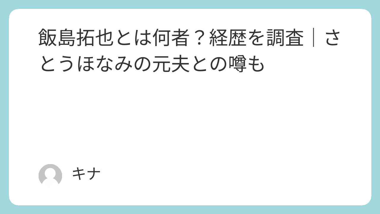 飯島拓也とは何者?経歴を調査|さとうほなみの元夫との噂も