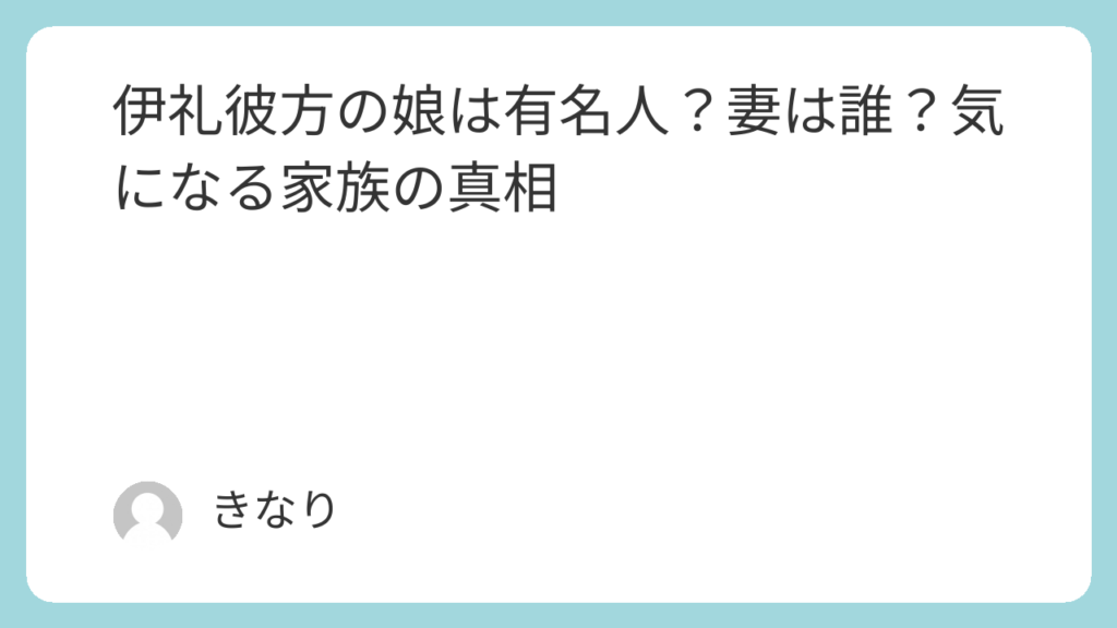 伊礼彼方さんの妻は一般女性で、名前や職業など詳細は公開されていません。