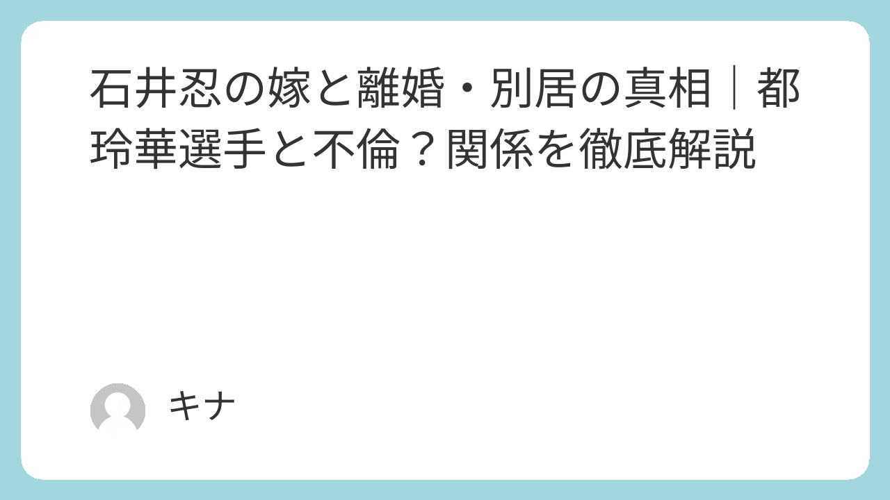 現在は離婚協議中で、戸籍上はまだ既婚者という状態です。石井さん側は婚姻関係がすでに破綻した後に都選手との交際を始めたと説明しています。