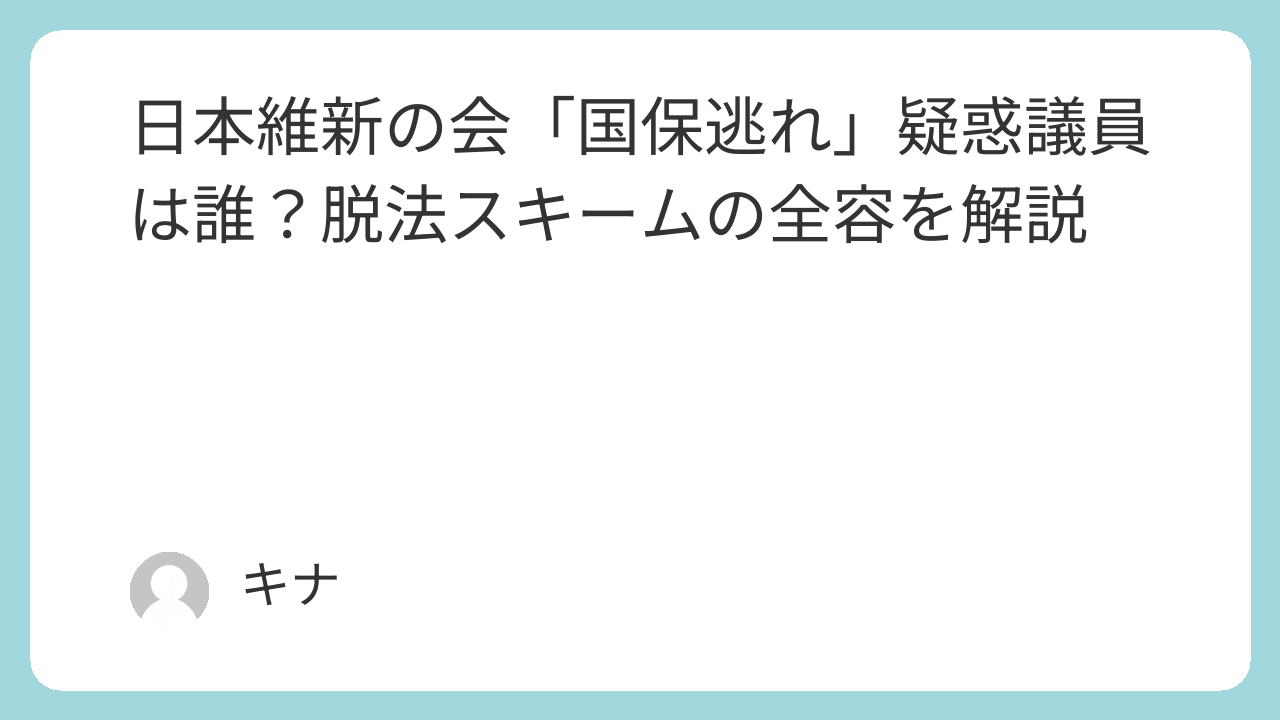 2025年12月、日本維新の会の複数議員による「国保逃れ」疑惑が浮上し、大きな波紋を広げています。一般社団法人を利用して国民健康保険料の支払いを回避していた疑いがあり、具体的な議員名や脱法的スキームの実態が明らかになりつつあります。