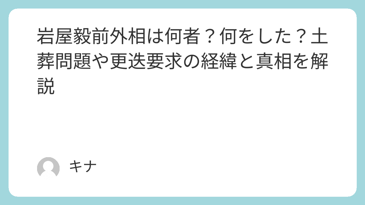 政治家の政策や発言を評価する際は、一次情報を確認し、誤情報に惑わされないことが重要です。岩屋氏をめぐる様々な疑惑や批判については、事実関係を冷静に見極める必要があるでしょう。