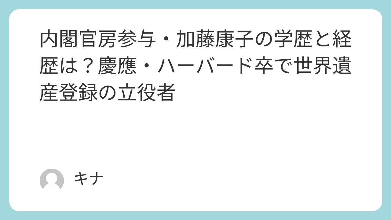 - 加藤康子氏の学歴・経歴と内閣官房参与としての役割