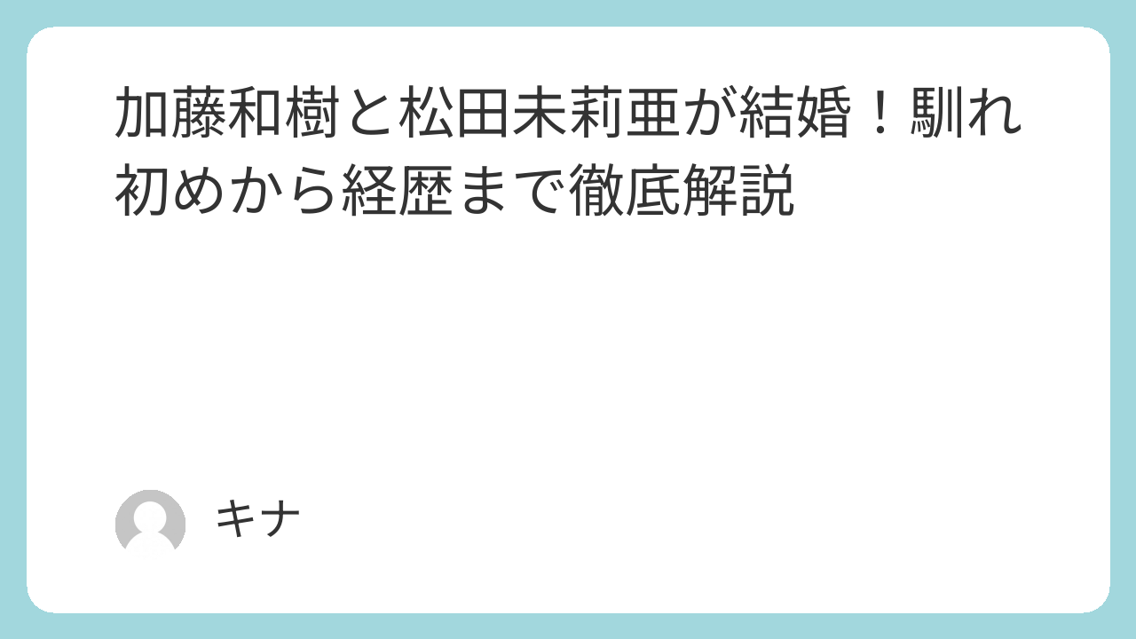 2025年12月20日、加藤和樹さんが自身の公式サイトで松田未莉亜さんとの結婚を発表しました。