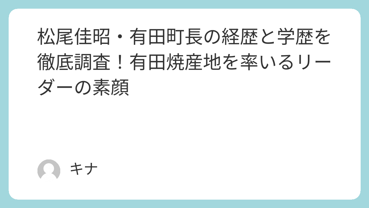 佐賀県西松浦郡有田町の町長を務める松尾佳昭氏。有田焼の産地として知られる有田町で、伝統と革新を掲げ町政を率いています。この記事では、松尾町長の経歴や学歴、そして町長としての取り組みについて詳しくご紹介します。