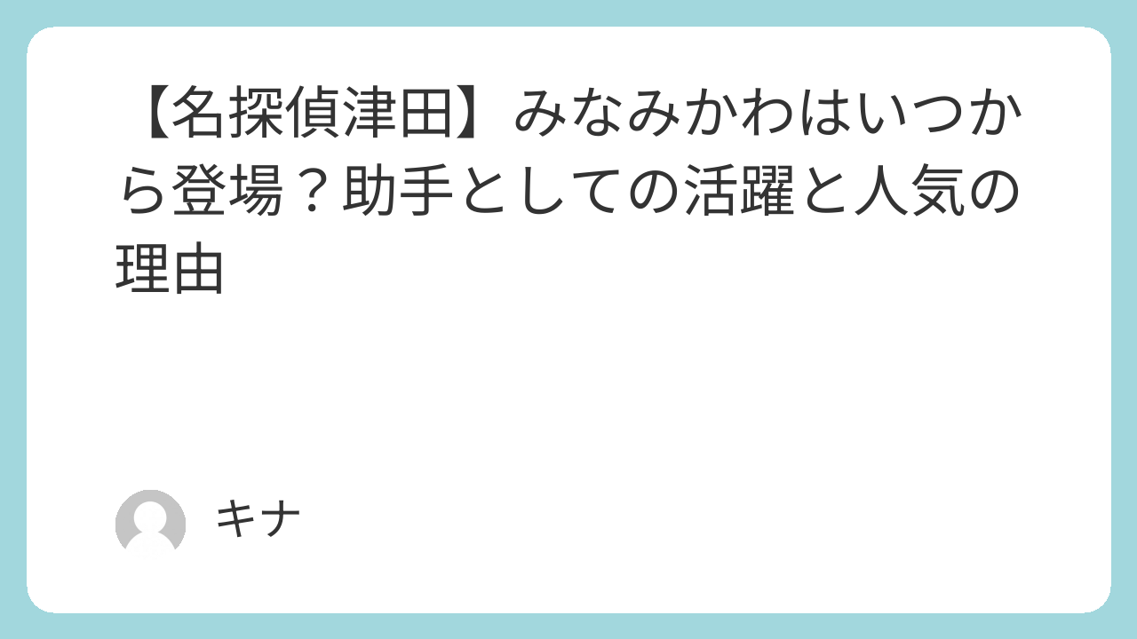 - 「みなみかわの存在があってこそ名探偵津田は完璧」
