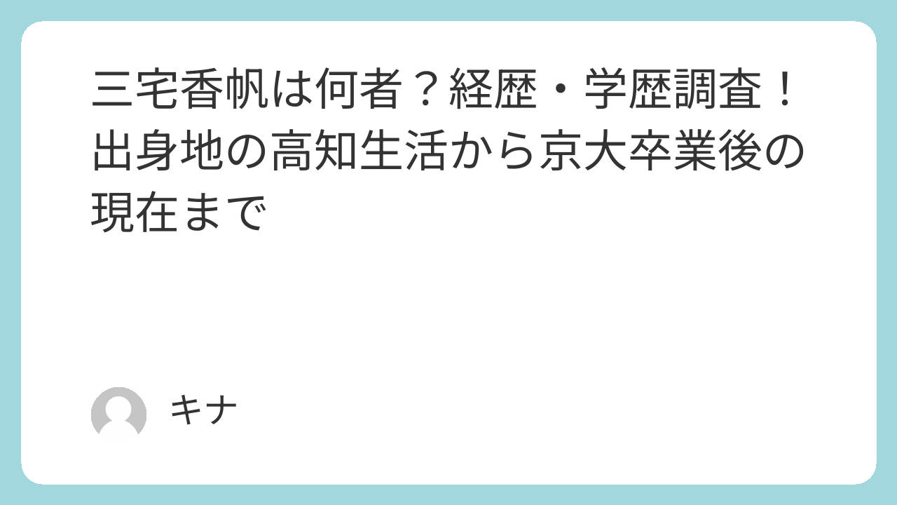 高知学芸高等学校は県内でも有数の進学校で、京都大学をはじめとする難関大学への合格実績も豊富です。三宅さんもこの学校で学力を磨き、京都大学合格への道を切り開きました。
