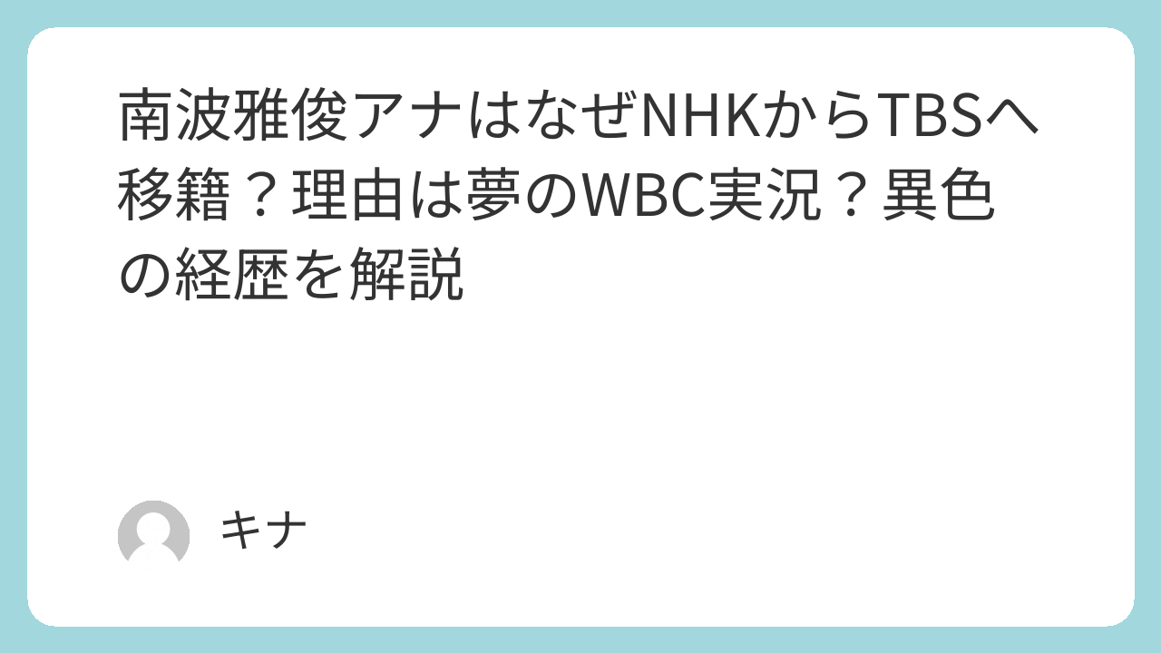 - 南波雅俊アナがNHKからTBSへ移籍した具体的な理由