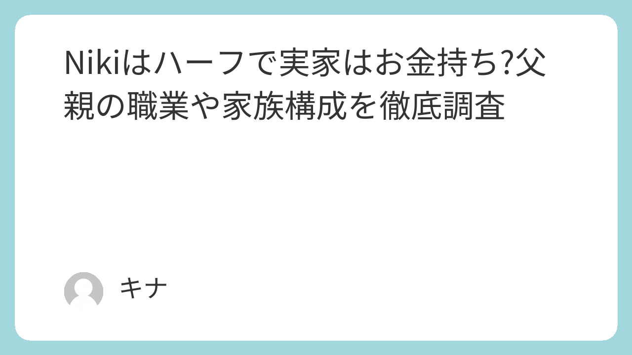 Nikiさんの家族背景について、以下のポイントをまとめます。