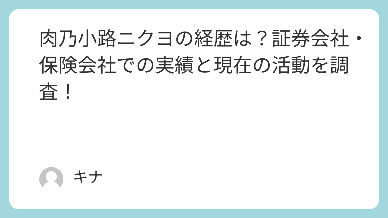 - 肉乃小路ニクヨさんの証券会社・銀行・保険会社での具体的な経歴