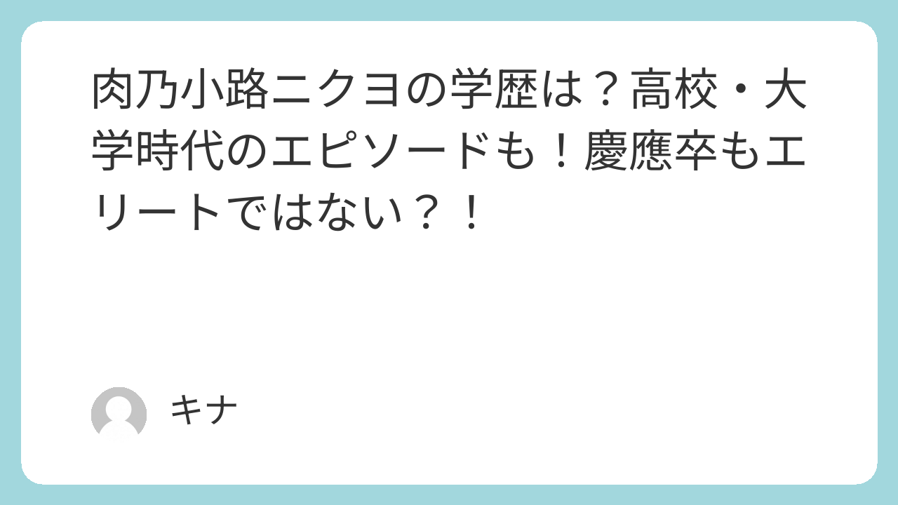 - 肉乃小路ニクヨさんの高校・大学の詳細な学歴
