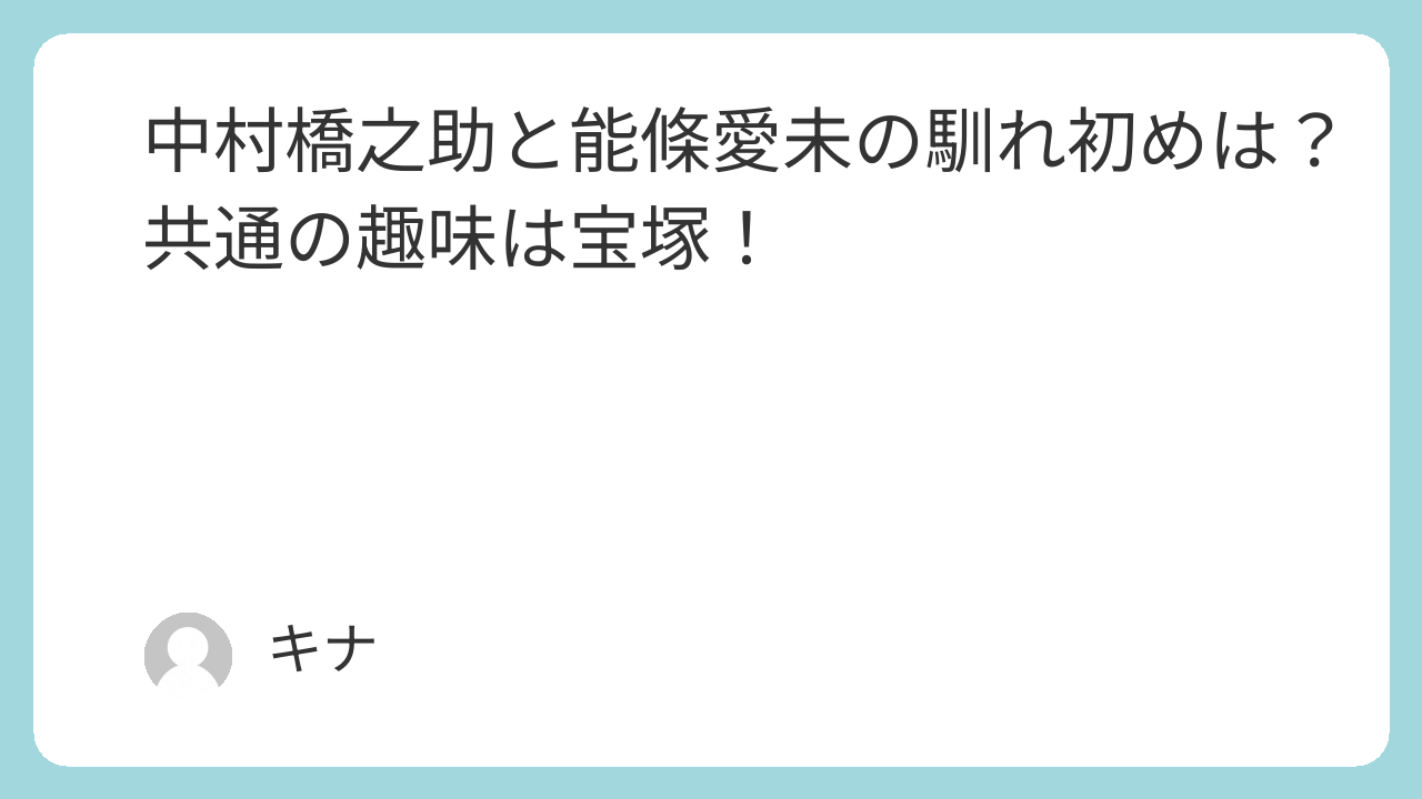 実は二人には「宝塚ファン」という共通点がありました。中村橋之助さんは母・三田寛子さんの影響で宝塚にハマり、2018年に観た「エリザベート」に感激したという「ヅカ男子」。一方、能條さんも宝塚OGの紫吹淳さんの大ファンという「ヅカガール」でした。