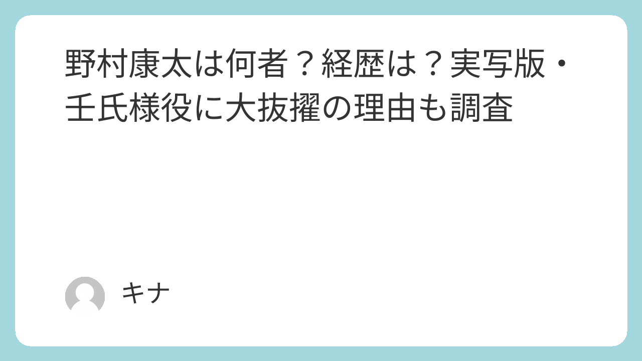 - 野村康太が壬氏様役に選ばれた理由と期待