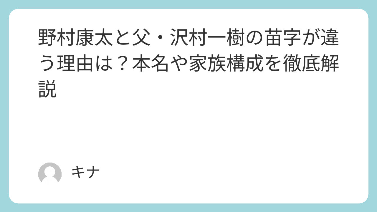 - 野村康太と父・沢村一樹の苗字が違う理由と本名