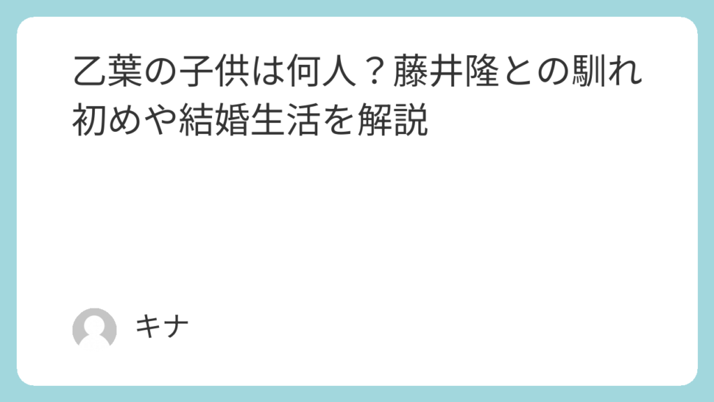 結論からお伝えすると、乙葉さんの子供は1人です。