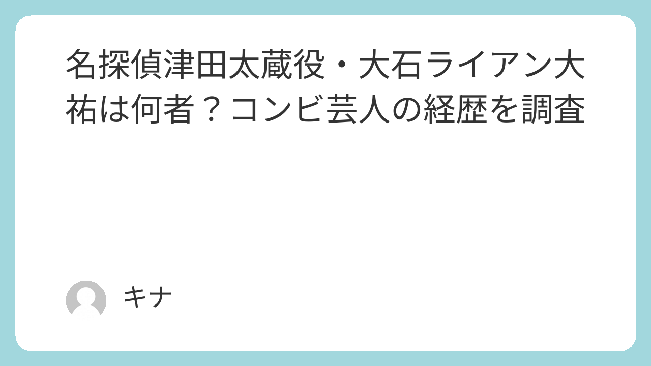 名探偵津田太蔵役・大石ライアン大祐は何者?コンビ芸人の経歴を調査