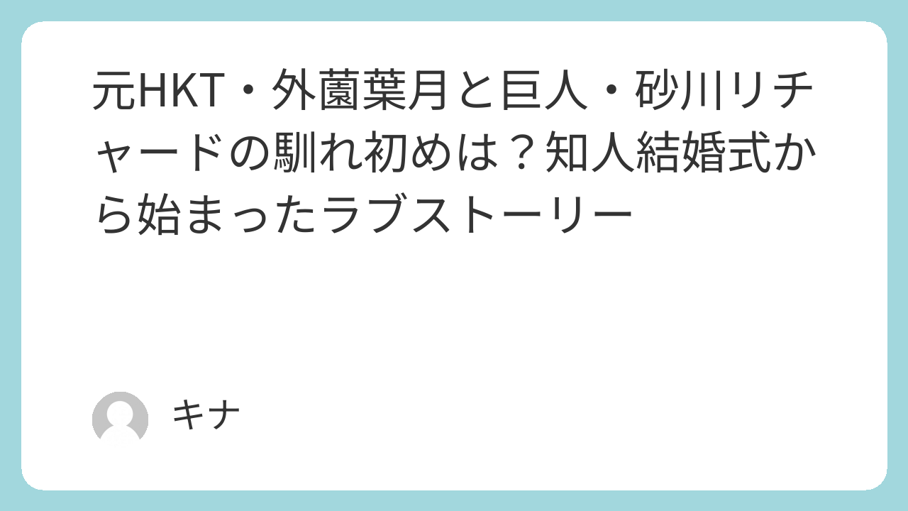 2025年11月26日、読売ジャイアンツの砂川リチャード選手と元HKT48の外薗葉月さんが結婚を発表しました。二人の馴れ初めが気になる方も多いのではないでしょうか。