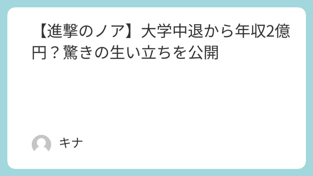 まとめ|進撃のノアの大学中退から年収億超えまでの生い立ち