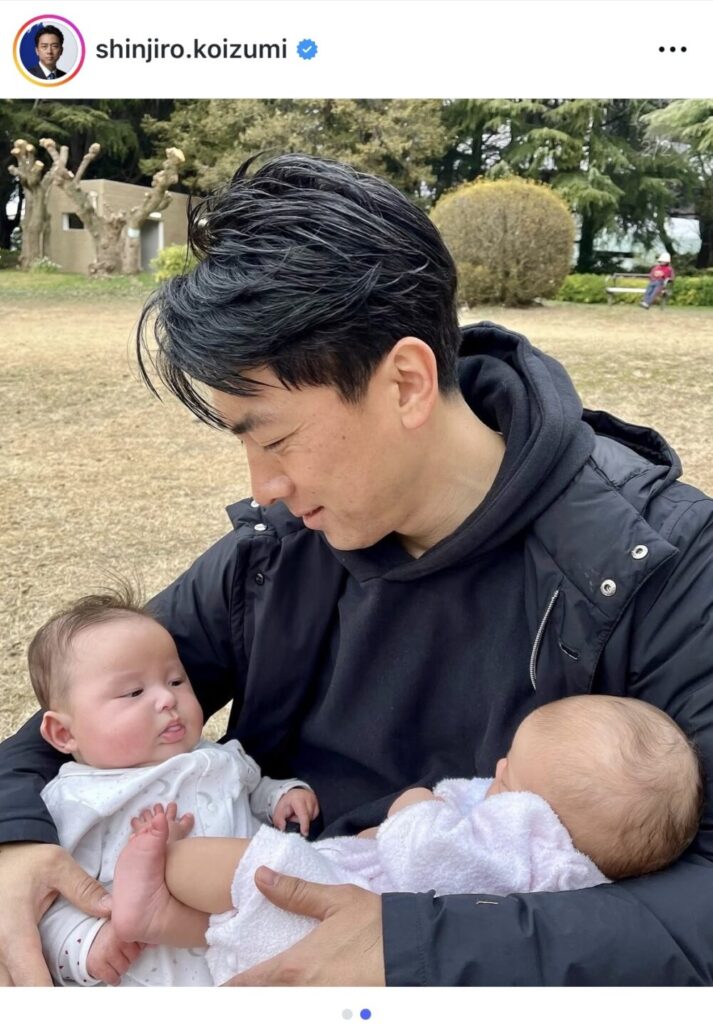 2024年2月に小泉進次郎さんがインスタグラムに投稿した写真がきっかけです。その写真には、月齢がほぼ同じと思える赤ちゃんを2人抱っこしている様子が写っていました。
