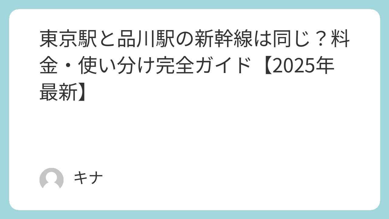 東海道新幹線に乗る際、「東京駅と品川駅、どちらから乗ればいいの?」「料金は同じなの?」と疑問に思う方は多いのではないでしょうか。この記事では、東京駅と品川駅の新幹線利用について、料金の違いや賢い使い分け方を詳しく解説します。