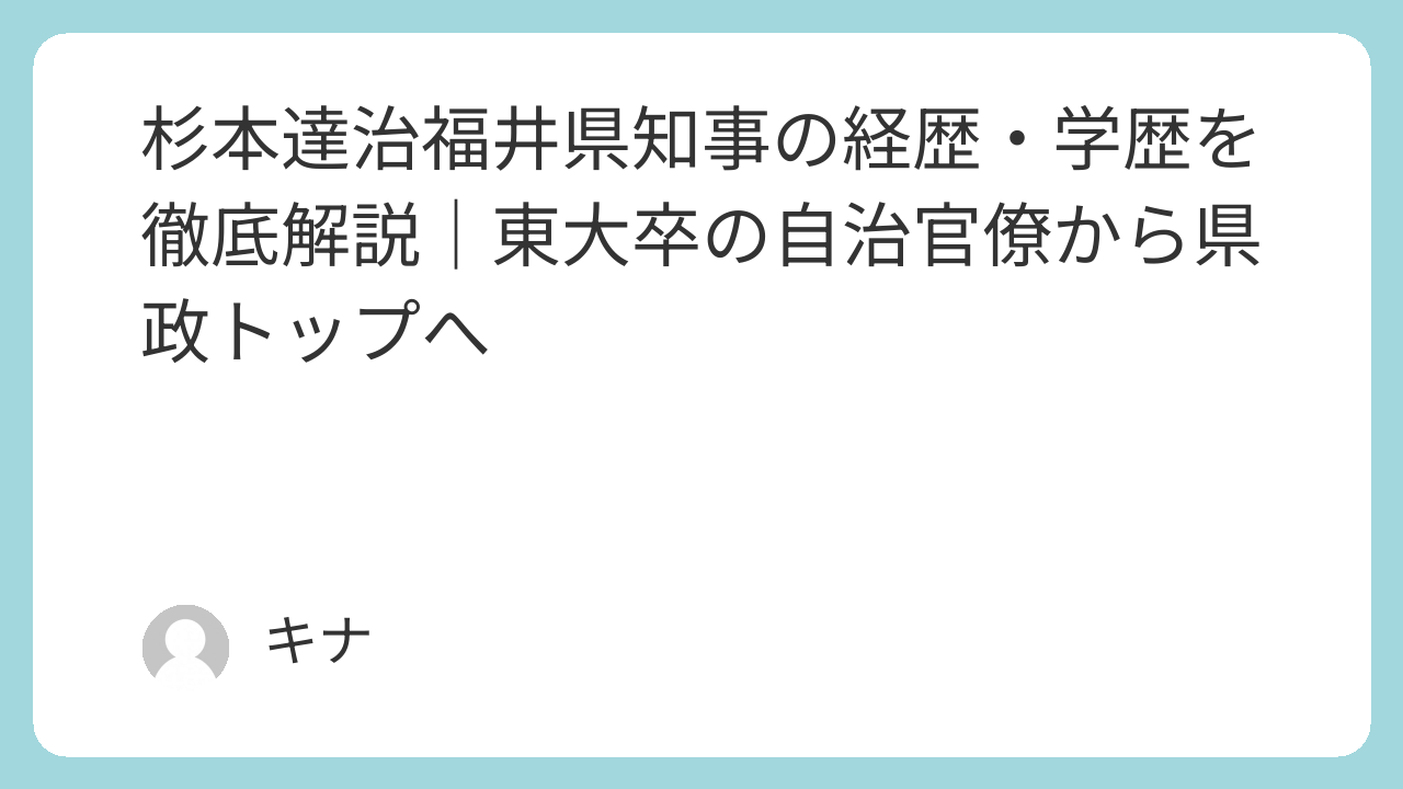 この記事では、杉本達治知事の詳しい学歴・経歴をご紹介します。