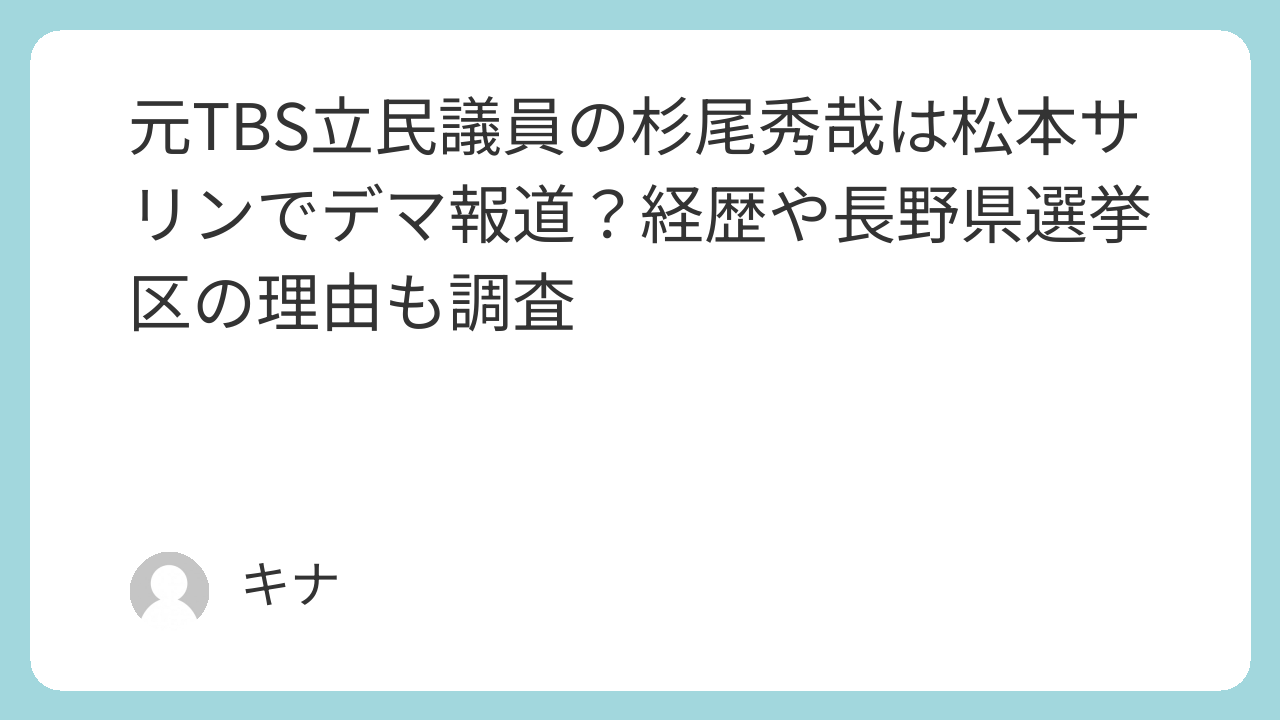 本記事では、杉尾氏とTBS時代の松本サリン事件報道との関係、そして長野県選挙区から出馬した経緯について詳しく解説します。
