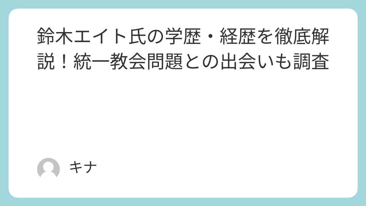 鈴木エイト氏は日本大学経済学部を卒業しています 。同大学入学のために滋賀県から上京しました。