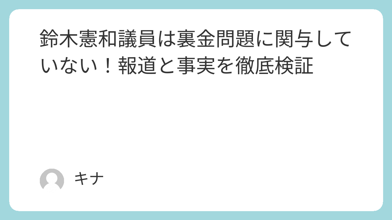 - なぜ鈴木議員の名前が裏金と結びつけられたのか