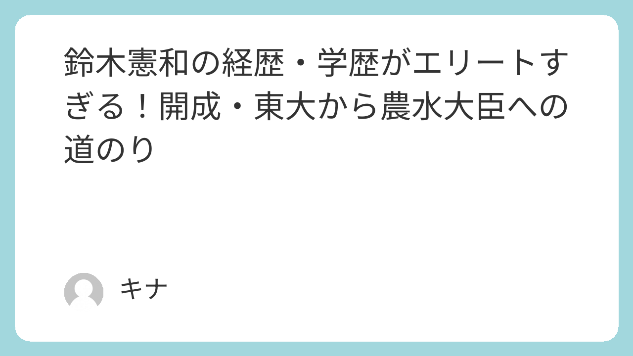 2025年10月21日、高市内閣の発足に伴い、鈴木憲和氏が第73代農林水産大臣に就任しました。43歳という若さでの初入閣に注目が集まる中、「どんな学歴なのか」「これまでの経歴は?」と気になっている方も多いのではないでしょうか。