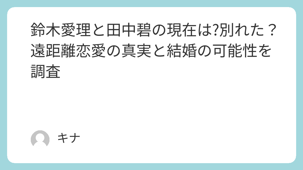 これからも鈴木愛理さんと田中碧選手、それぞれの活躍と、二人の幸せな未来を応援していきましょう!