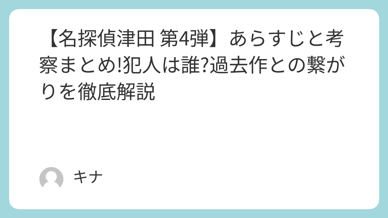 まとめ:名探偵津田第4弾を楽しむために