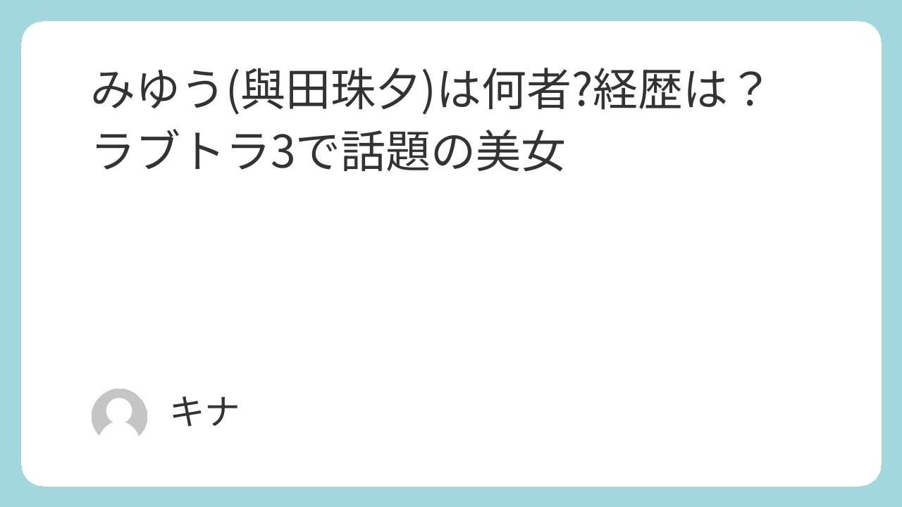みゆう(與田珠夕)は何者?経歴は?ラブトラ3で話題の美女