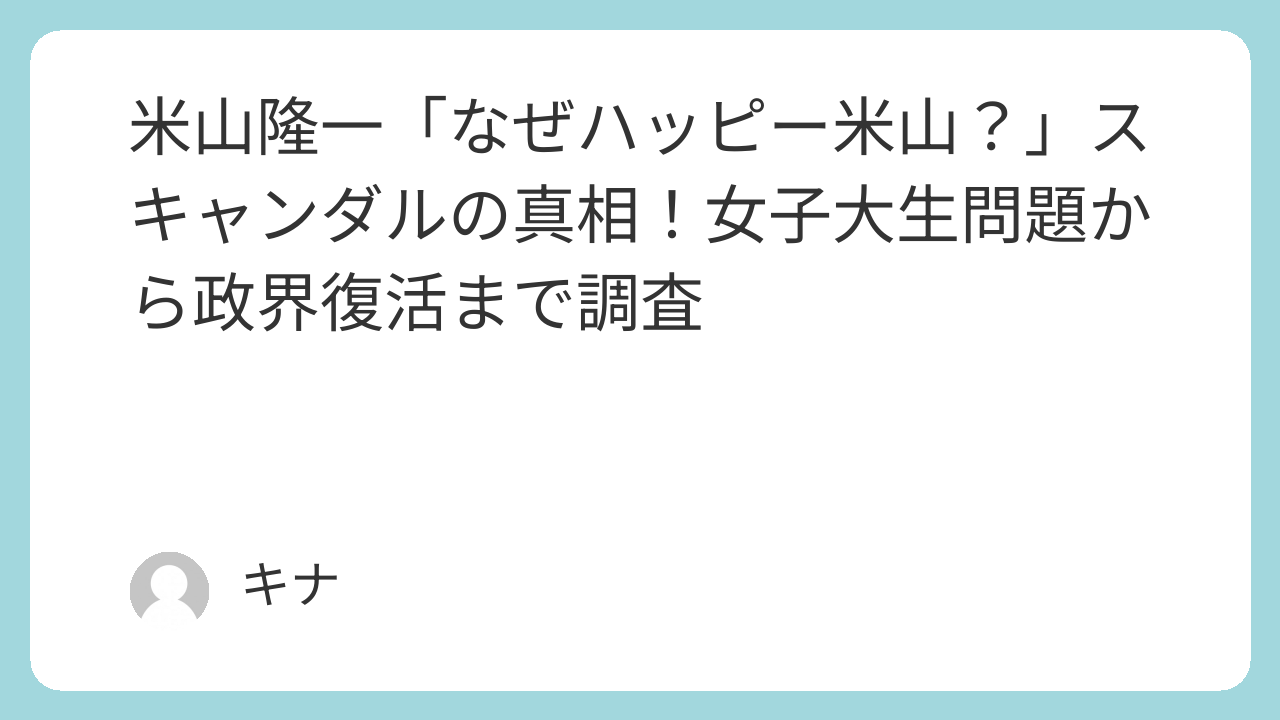 一部報道によると、米山氏は「ハッピー」と揶揄したアカウントをSNSでブロックするなど、この件は今もトラウマとして残っているようです。また、対立的な意見を述べたアカウントに対しても「左様なら」と返答してブロックすることが多いとされています。